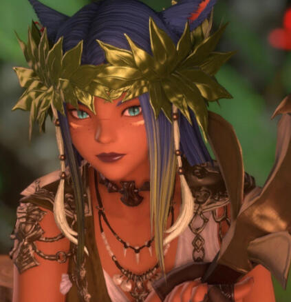 Though his first priority is always his people and their territory, he is not unaccustomed to traveling beyond the jungle when necessary. He has made his presence known in Limsa Lominsa, and will visit other areas of Eorzea on emissary missions to other Seeker tribes.